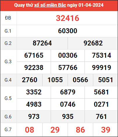 ✅ 2. Tổng hợp kết quả miền Bắc ngày 1/4/2024