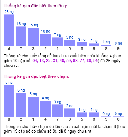 ⚡ Thống kê 2 số cuối giải đặc biệt theo tổng lâu chưa xuất hiện nhất là tổng 4 đã 26 ngày chưa ra