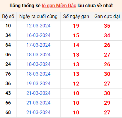 ⚡ Lô khan MB lâu chưa về nhất: 10 – 34 – 64 – 06 – 24