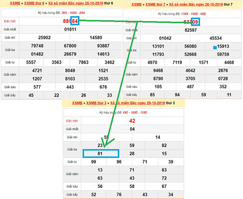 Ngày 25/10/2019 2 số cuối GĐB là 84, ngày 26 là 09, như vậy theo công thức ta có: