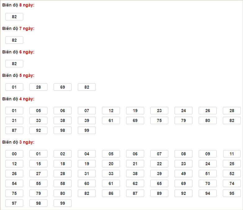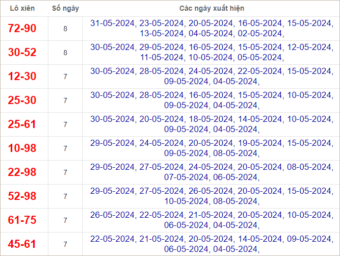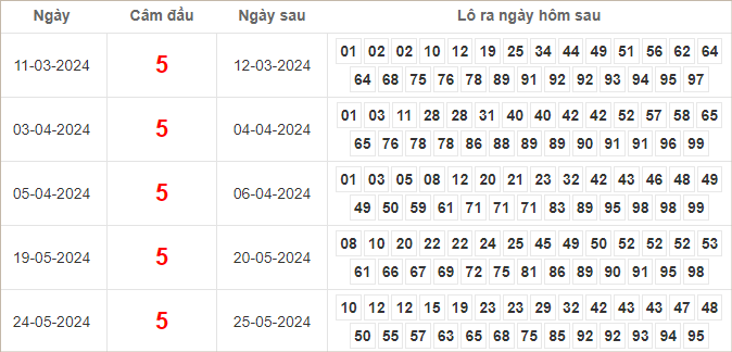 Cặp lô 05, 22, 38, 62, 95 có độ dài 3 ngày.