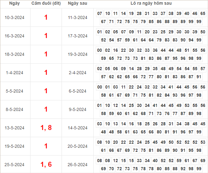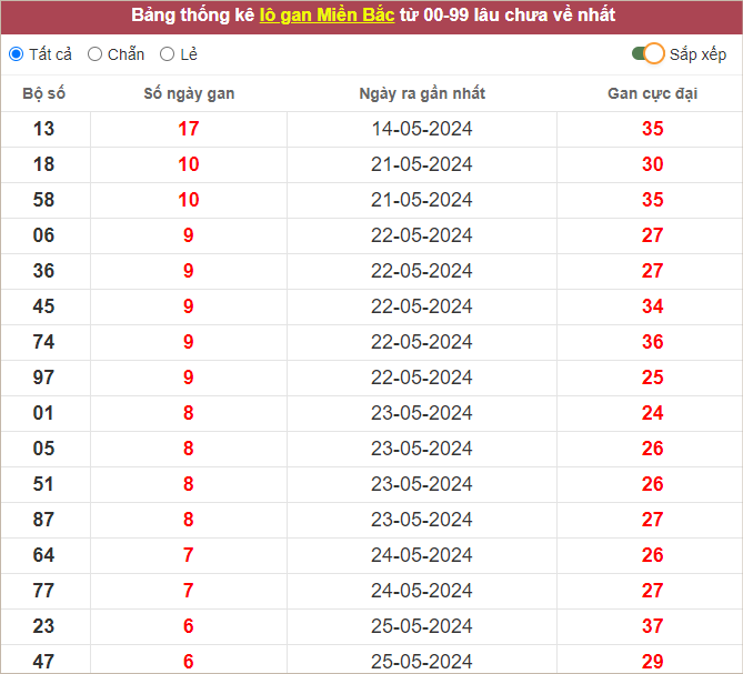 Dàn lô hôm nay miền Bắc bất bại ngày 1/6/2024