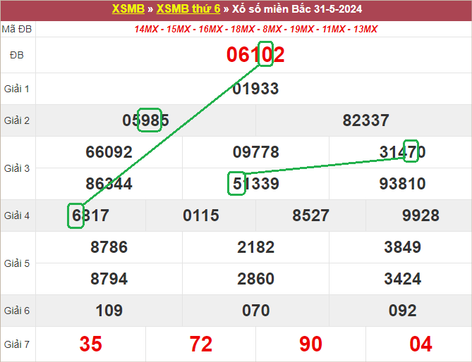 Xem lại bảng KQXSMB ngày 31/5/2024 hôm qua