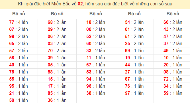 Thống kê hai số cuối giải đặc biệt miền Bắc ngày 1/6