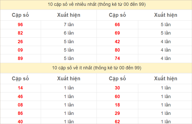 ⭐️ Thống kê tần suất các cặp lô về nhiều trong 10 ngày gần đây: 15 (7 lần), 13, 23, 26, 42 (6 lần), 10 (5 lần), 00, 03 (4 lần)