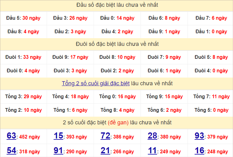 Thống kê hai số cuối giải đặc biệt miền Bắc ngày 1/9