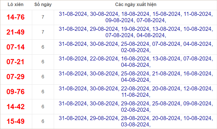 Cầu lô chạy 7 ngày qua (cầu dài nhất)