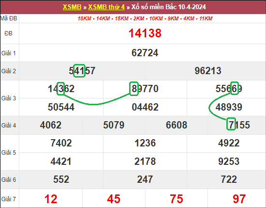 Xem lại bảng KQXSMB ngày 10/4/2024 hôm qua