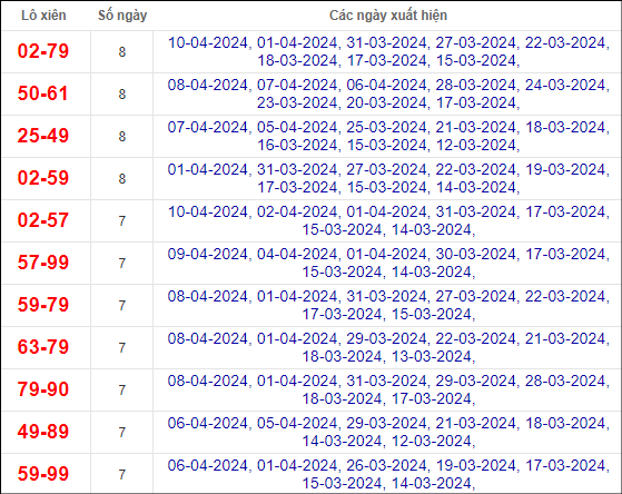Dàn lô hôm nay miền Bắc bất bại ngày 11/4/2024