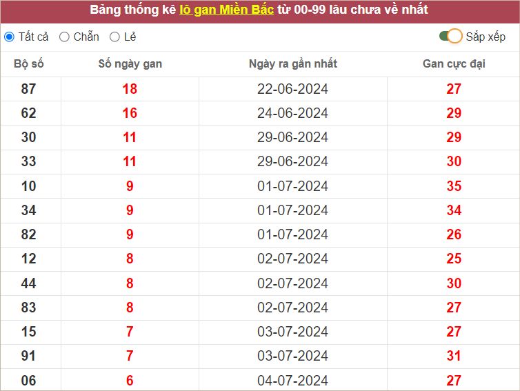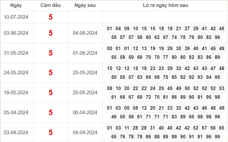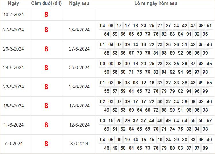 Dàn lô hôm nay miền Bắc bất bại ngày 11/7/2024