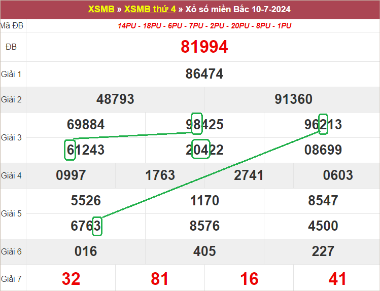 THỐNG KÊ LÔ TÔ KẾT QUẢ XSMB NGÀY 10-7-2024