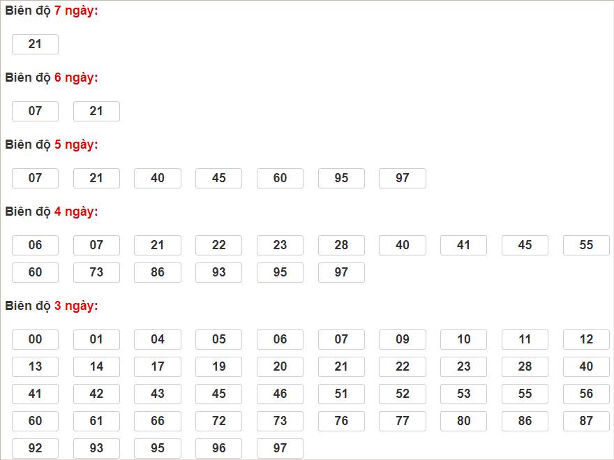 Cặp lô 23, 43 có độ dài 3 ngày.