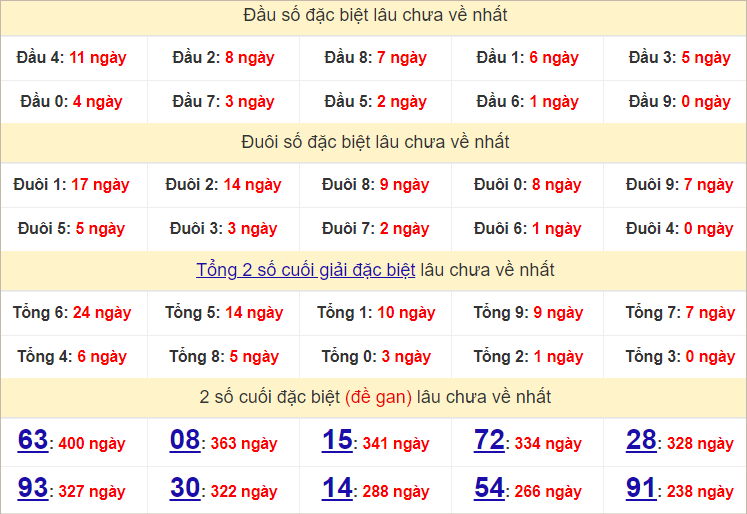 Thống kê hai số cuối giải đặc biệt miền Bắc ngày 11/7