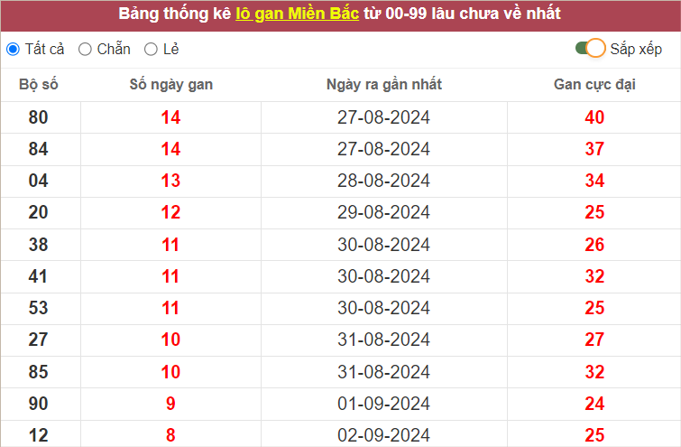 ⭐️ Lô gan miền Bắc lâu ra nhất: 80 – 84 – 04 – 20 – 38