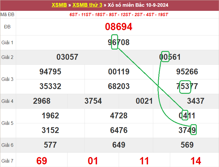 Dự đoán XSMB hôm nay 11/9/2024 chính xác nhất. Thống kê XSMB hôm nay ngày 11/9/2024 với những cặp số có tỉ lệ về nhiều nhất trong kết quả xổ số miền Bắc hôm nay với các mục dự đoán XSMB ngày 11/9/2024, chọn ra các cặp lô bạch thủ lô, những cặp lô tô xiên, lô tô gan, lô tô 3 số, soi lô đề XSMB với tỷ lệ trúng cao.