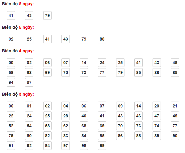 Cặp lô 20, 22, 43, 49 có độ dài 3 ngày.