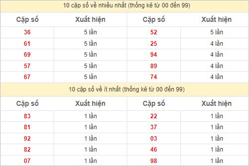 ⭐️ Thống kê tần suất các cặp lô về nhiều trong 10 ngày gần đây: 69 (7 lần), 30, 45, 67, 73, 82, 95, 98 (6 lần)