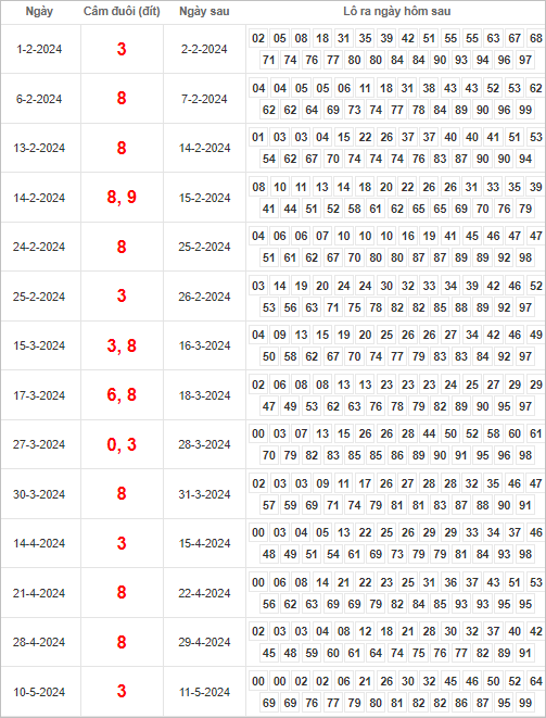 Dàn lô hôm nay miền Bắc bất bại ngày 12/5/2024