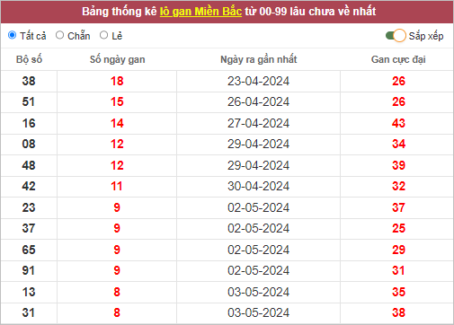 ⭐️ Lô gan XSMB lâu ra nhất: 38 – 51 – 16 – 08 – 48