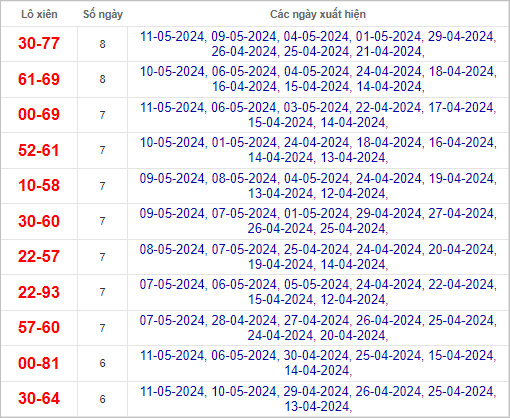 THỐNG KÊ LÔ TÔ KẾT QUẢ XSMB NGÀY 11-5-2024