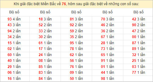 - Giải đặc biệt về 76, thì hôm nay đánh là thắng với số 58 – 85