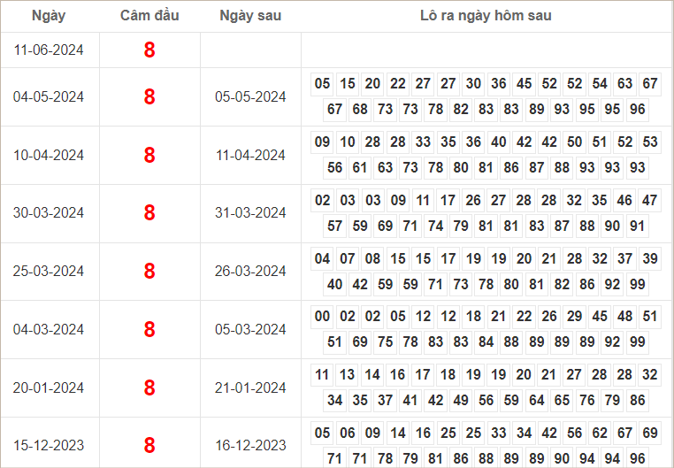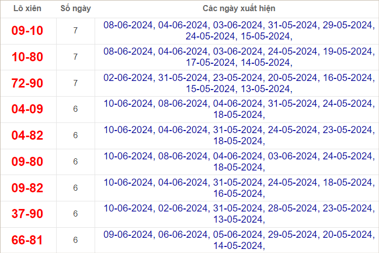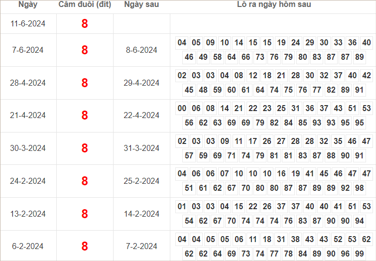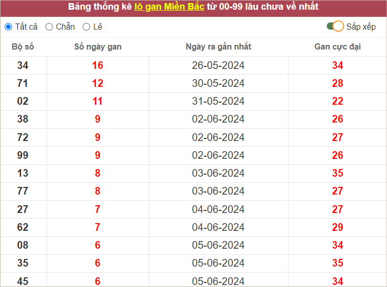 Dàn lô hôm nay miền Bắc bất bại ngày 12/6/2024