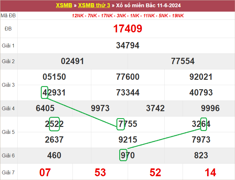 Xem lại bảng KQXSMB ngày 11-6-2024 hôm qua