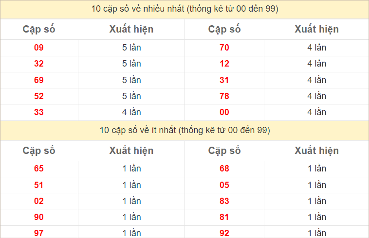 ⭐️ Thống kê tần suất các cặp lô về nhiều trong 10 ngày gần đây: 66 (8 lần), 15 (6 lần), 09, 10, 44, 78, 80, 96 (5 lần)