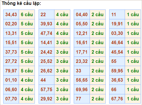 Cầu lô chạy 6 ngày qua (cầu dài nhất)
