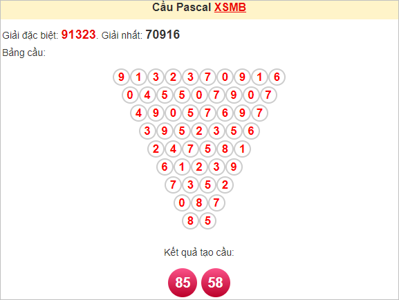 Kết quả từ soi cầu Pascale là cặp số may mắn: 85 58