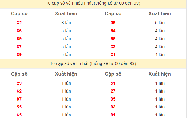 Các cặp số nóng nhất hôm nay: 61 – 70 – 95 – 01 – 09