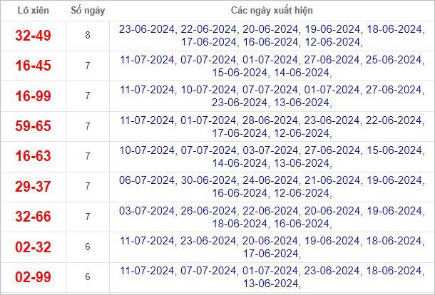 Cầu lô chạy 8 ngày qua (cầu dài nhất)