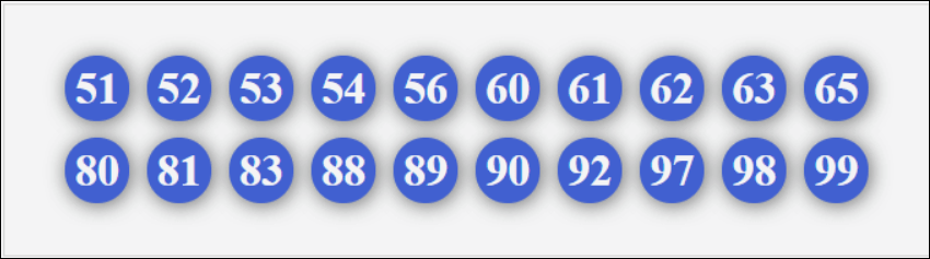 60, 61, 62, 63, 64, 65, 66, 67, 68, 69, 90, 91, 92, 93, 94, 95, 96, 97, 98, 99