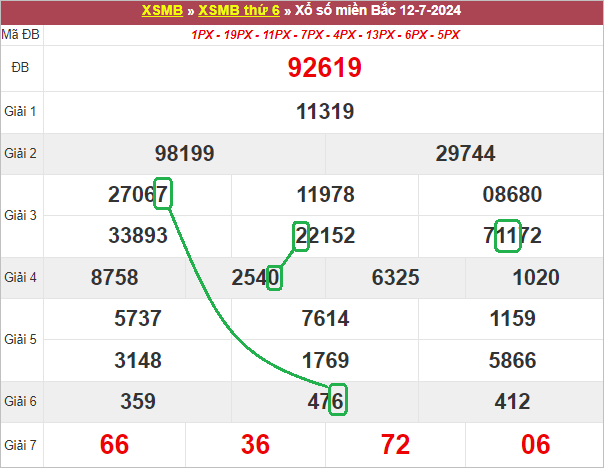 Xem lại bảng KQXSMB ngày 12-7-2024 hôm qua