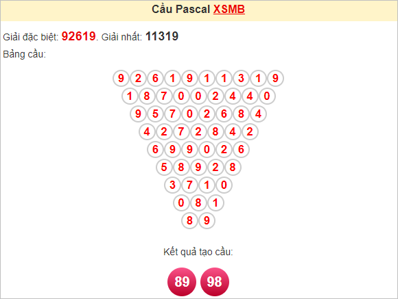 Kết quả từ soi cầu Pascale là cặp số may mắn: 89 98