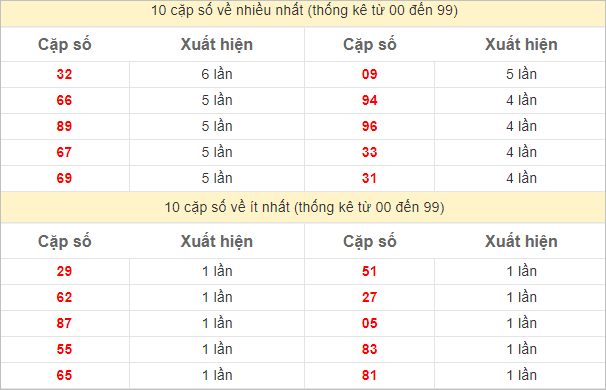 Các cặp số nóng nhất hôm nay: 19 – 62 – 13 – 89 – 11