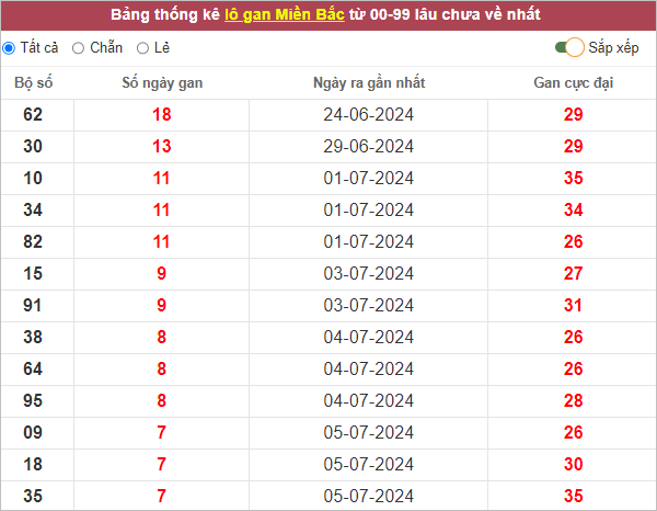 ⭐️Lô gan MB lâu ra nhất: 62 – 30 – 10 – 34 – 82