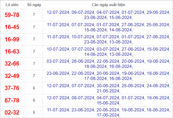 THỐNG KÊ LÔ TÔ KẾT QUẢ XSMB NGÀY 12-7-2024
