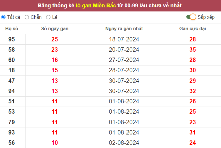⭐️Thống kê lô gan MB lâu ra nhất: 95 – 58 – 60 – 18 – 47