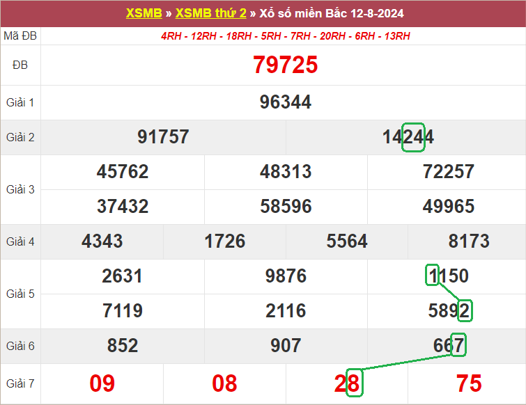 Xem lại bảng KQXSMB ngày 12-8-2024 hôm qua
