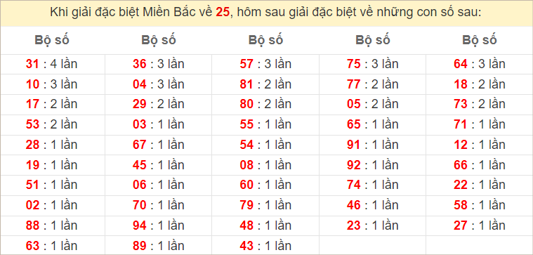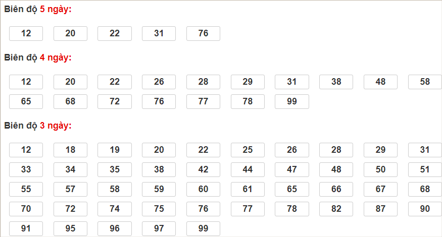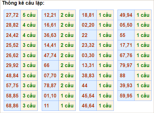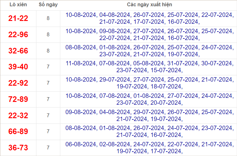 Cặp lô 25, 30, 44, 47, 51, 65, 70 có độ dài 3 ngày.