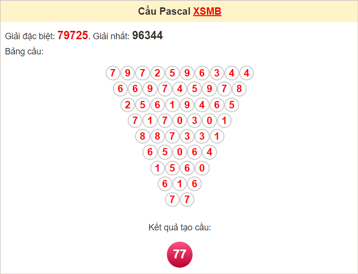 Kết quả từ soi cầu Pascale là cặp số may mắn: 77