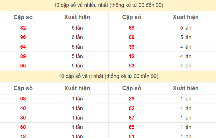 Các cặp số nóng nhất hôm nay: 72 – 97 – 12 – 21 – 17