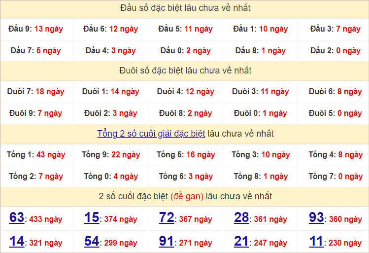 Thống kê hai số cuối giải đặc biệt miền Bắc ngày 13/8