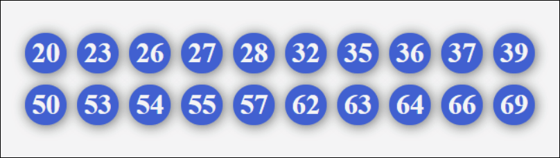 60, 61, 62, 63, 64, 65, 66, 67, 68, 69