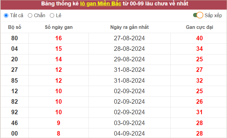 ⭐️Thống kê lô gan XSMB lâu ra nhất: 80 – 04 – 20 – 27 – 85