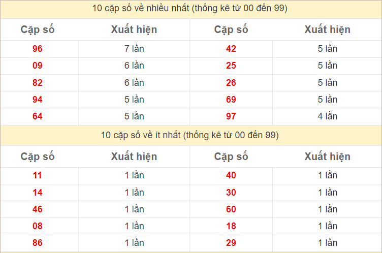 ⭐️ Thống kê tần suất lô về nhiều trong 30 ngày qua: 09, 97 (15 lần), 11, 42, 72 (14 lần), 15, 36, 78 (13 lần)