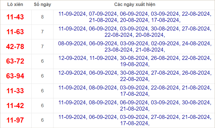 THỐNG KÊ LÔ TÔ KẾT QUẢ XSMB NGÀY 12-9-2024
