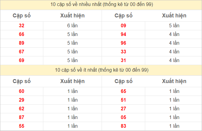 Các cặp số nóng nhất hôm nay: 46 – 32 – 41 – 49 – 28