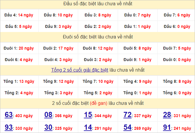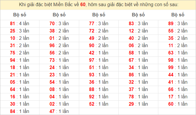 Thống kê hai số cuối giải đặc biệt miền Bắc ngày 14/7